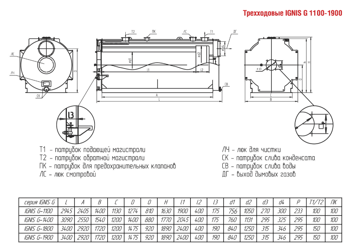 Технические характеристики водогрейного трёхходового котла ARCUS IGNIS G-1800